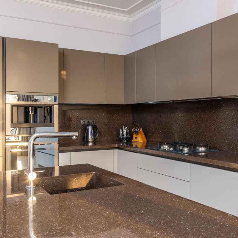 "Ten Brown Granite features a deep, earthy brown hue with intricate patterns and textures that evoke a sense of natural elegance. Its polished finish enhances its luxurious appearance, making it a perfect choice for creating a sophisticated and inviting ambiance in kitchens and bathrooms."