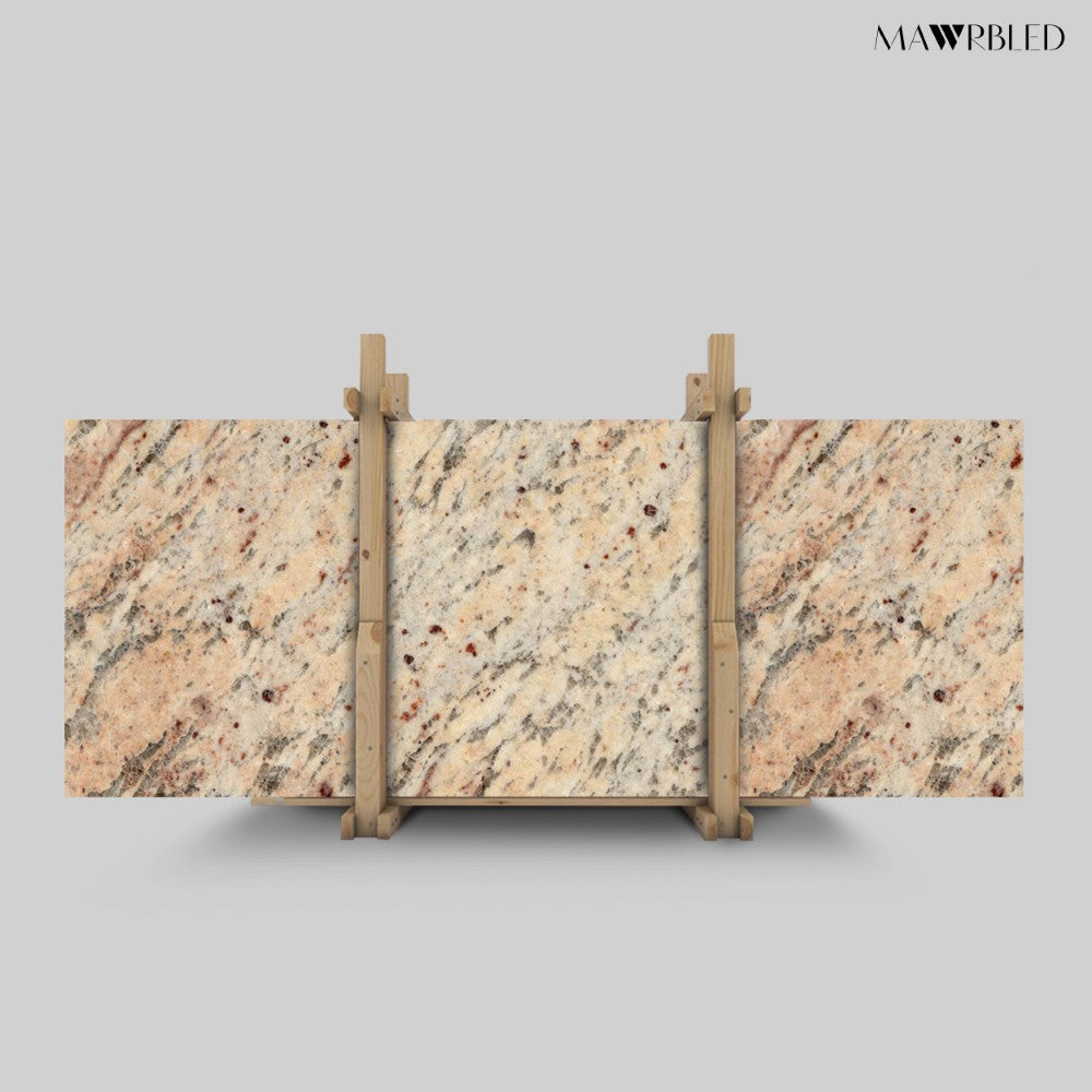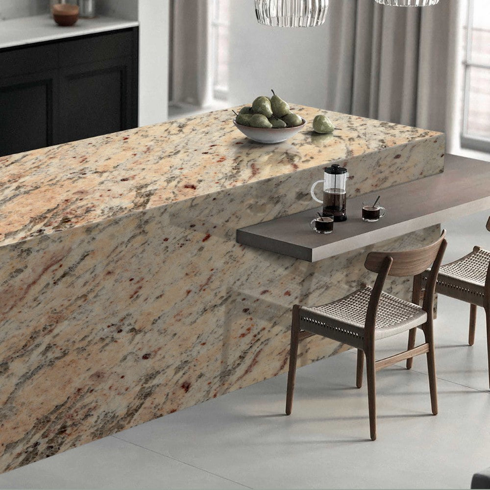Madurai Gold Granite is celebrated for its warm golden-yellow base adorned with darker veining and occasional speckles that enhance its natural beauty. This durable and visually striking stone is ideal for countertops and flooring, imparting a luxurious and inviting ambiance to kitchens and bathrooms alike. Madurai Gold Granite's timeless appeal makes it a popular choice for those seeking a blend of durability and aesthetic charm in their living spaces.