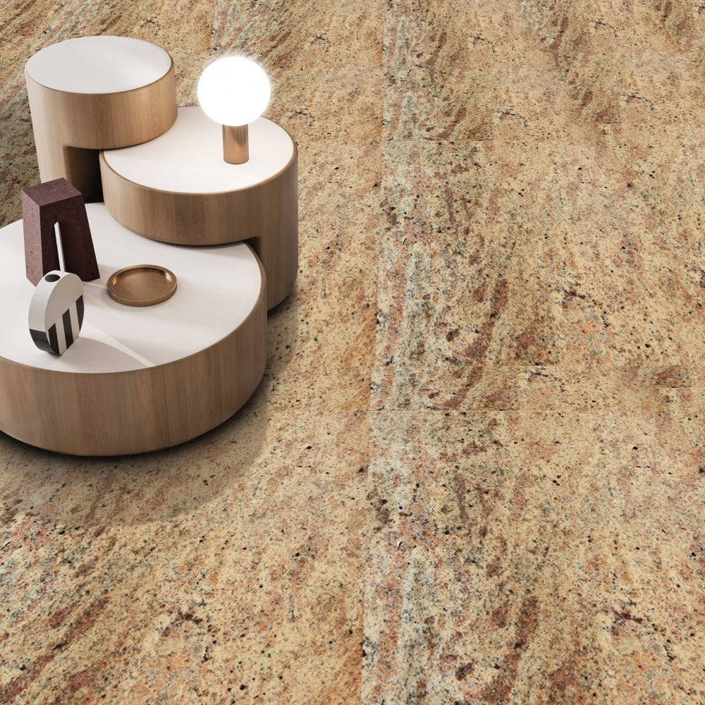 - Luxurious Golden Base: Gold Flake Granite brings a luxurious golden base adorned with delicate flecks, creating a regal ambiance.