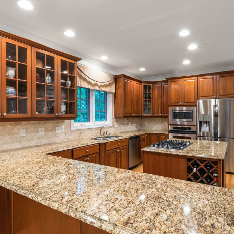 Kitchen Countertops: Transform your kitchen into a culinary sanctuary with Icon Brown Granite countertops. Resistant to heat and stains, it ensures a durable and elegant surface for meal preparation.