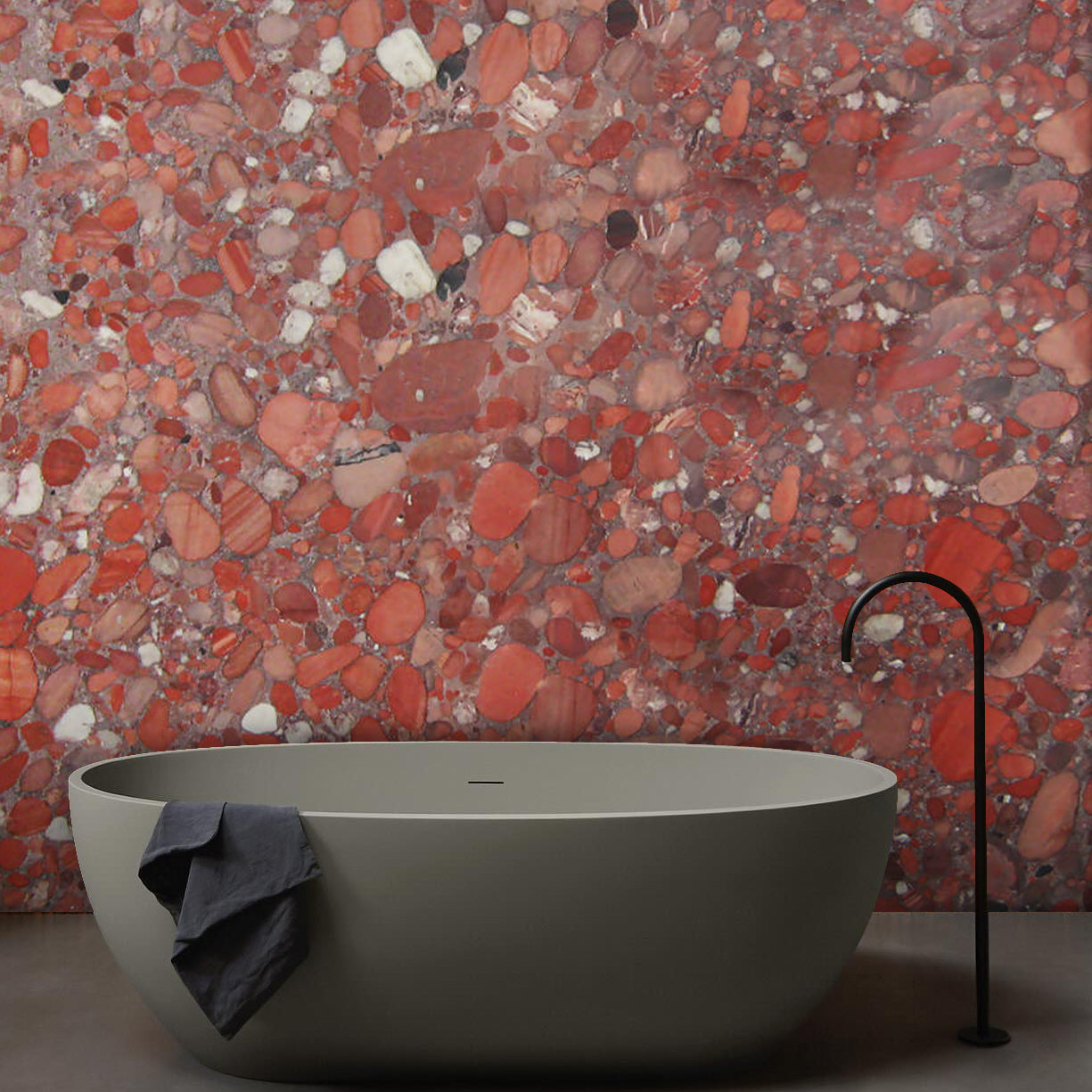 Red Marinace Granite is characterized by its deep red background interspersed with large, distinct pebbles and stones in varying shades of grey and black, resembling a riverbed or natural mosaic. Ideal for countertops, flooring, and accent walls in residential and commercial spaces, this unique and durable stone adds a rustic and artistic statement to interior designs. Its polished finish enhances the natural textures and colors, offering a bold and distinctive aesthetic. Known for its durability and heat resistance, Red Marinace Granite is a practical and eye-catching choice for creating memorable and captivating spaces with a touch of natural charm.