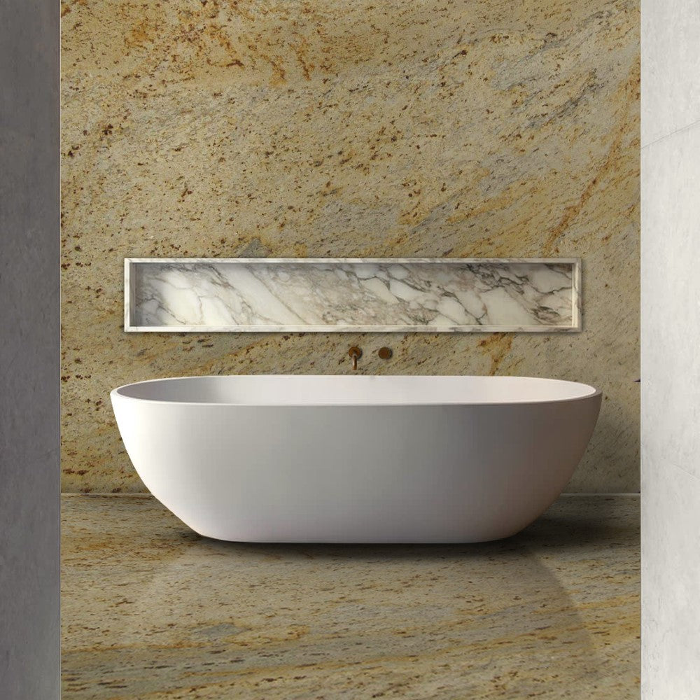 Bathroom Luxe: Infuse your bathroom with the luxurious charm of Madurai Gold Granite for vanities and shower surrounds. Its water-resistant properties ensure a perfect blend of glamour and functionality.