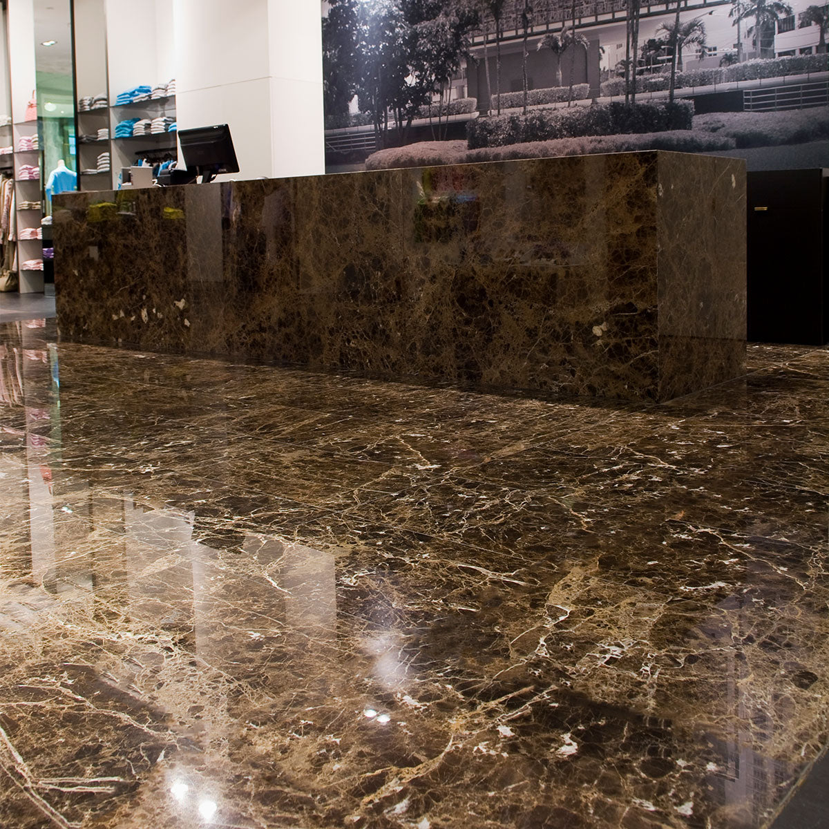 Sophisticated Commercial Spaces: Make a statement in commercial areas with Spanish Emperador Marble used for flooring, reception areas, and interior features that captivate visitors.
